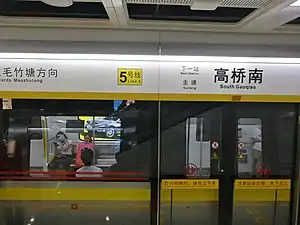 South Gaoqiao station (Chinese: 高桥南站; pinyin: Gāoqiáo Nánzhàn) is a subway station in Yuhua District, Changsha, Hunan, China, operated by the Changsha subway operator Changsha Metro. It entered revenue service on 28 June 2020.