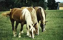 The South German Coldblood (German: Süddeutsches Kaltblut) is a breed of draught horse from southern Germany. It is distributed mainly in Bavaria. It is the most numerous of the four principal German draught horse breeds – the others being the Black Forest Horse, the Rhenish German Coldblood and the Schleswig Coldblood – and is the only one not listed as endangered by the FAO or by the Gesellschaft zur Erhaltung alter und gefährdeter Haustierrassen, the German national association for the conservation of historic and endangered domestic animal breeds.[4]