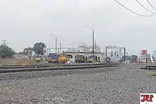 The South Kensington–West Footscray line is a railway line in the inner western suburbs of Melbourne, Australia. Linking South Kensington station on the Werribee line and associated freight terminals to Tottenham Yard and other freight lines, it is a primarily freight only line with no overhead wires, passenger stations or platforms. The most visible part of the line is where it dives under Footscray station and into a tunnel under nearby Bunbury Street.[1]