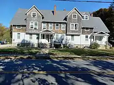 South Kingstown High School was officially established in 1880. The original building was built with funds provided by Rowland G. Hazard and located at 153 School Street, a street intersecting with Columbia Street. In 1909, when construction started on the new Hazard School building, the entire building was moved to 38 School Street and converted into residential apartment buildings where it remains today under the name "School Street Apartments".[9]