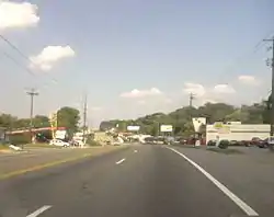 Major outcroppings of Tennessee marble in South Knoxville led to the development of several marble quarries and finishing facilities in the late 19th century, most notably the Ross-Republic quarries at what is now the Ijams Nature Center,[4] and the Candoro Marble Works in Vestal.[5] The completion of the Henley Bridge in 1931 and the opening of the Great Smoky Mountains National Park shortly afterward led to an explosion of commercial development along Chapman Highway, the primary route connecting Knoxville with the park.