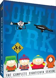 The eighteenth season of the American animated sitcom South Park premiered on Comedy Central on September 24, 2014 with "Go Fund Yourself", and ended with "#HappyHolograms" on December 10, 2014, with a total of ten episodes.[1] The season featured serial elements and recurring story lines,[2] which The A.V. Club noted as an experimentation with episode-to-episode continuity, in which the episodes "explore the consequences of the boys' actions [week to week], allowing the plots to be motivated in part by their attempts to dig themselves out of a hole".[3] As with most seasons of the show, all episodes of season 18 were written and directed by the series co-creator and co-star Trey Parker.