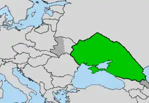 South Russia was established on 8 January 1919 by the White movement after reorganization of their armed forces in the Southern Front, consisting of territory under their control in Ukraine, Crimea, Kuban, the North Caucasus, Black Earth region, Lower Volga, and the Don region. South Russia was an anti-Bolshevik military state under the Armed Forces of South Russia led by General Anton Denikin, and its borders were undefined, changing based on victories or defeats against the Red Army.[1] In March 1920, Denikin established the South Russian Government in Novorossiysk, an attempt at a civil government with the General Command of the Armed Forces of South Russia serving as the legislative body. Less than a month later, the Whites were forced to evacuate from Novorossiysk, the Armed Forces of South Russia and the South Russian Government were dissolved. Denikin resigned and delegated power to General Pyotr Wrangel, who established the new Government of South Russia in Sevastopol and the new Russian Army, commonly known as the Army of Wrangel in April.