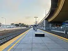 South San Francisco station is a Caltrain station in South San Francisco, California. The station is on the east side of the Bayshore Freeway (U.S. 101), east and south of the curved Grand Avenue overpass, and north of where the freeway crosses over the tracks. Downtown South San Francisco is to the west, across the freeway. It previously underwent a substantial modernization and expansion project, completed in January 2022.[3][4]