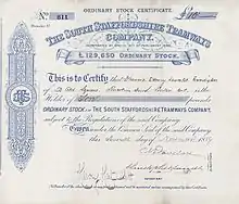 The South Staffordshire and Birmingham District Steam Tramways Company which became the South Staffordshire Tramways Company operated a tramway service from their depot in Wednesbury between 1883 and 1924.[1]