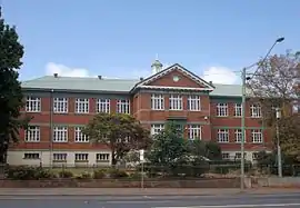 Toowoomba South State School opened in 1865. It was divided into Toowoomba South Girls and Infants School and Toowoomba South Boys School in 1869. On 1 April 1878 the Girls and Infants School split into Toowoomba Middle Girls State School and Toowoomba Middle Infants State School, but on 1 March 1880 they were merged to create Toowoomba Middle Girls and Infants State School. On 22 January 1883 the school was split again into Toowoomba South Girls State School and Toowoomba South Infants State School, being merged back on 1 October 1900 into Toowoomba South Girls and Infants School. In 1983 the Girls and Infants School and the Boys School were merged to re-establish Toowoomba South State School.[5] The school closed on 31 December 2013.[8] Over the many years and the splits/mergers, the physical footprint of the school (as a whole) has changed. At its commencement, the school was on the north-east corner of Ruthven Street and Lawrence Street (27.5702°S 151.9523°E), later expanding through James Street. At its closure, the school was at 158 James Street (27.5697°S 151.9526°E). During much of its history, the school also occupied 152 James Street (corner of Neil Street, 27.5694°S 151.9546°E) during much of its history.[9] This series of maps shows some of the changes.[10][11][12][13][14] The school's website was archived.[15]