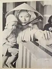 The end of the Second World War saw anti-Japanese Việt Minh guerrilla forces, led by communist fighter Ho Chi Minh, proclaiming the establishment of the Democratic Republic of Vietnam in Hanoi in September 1945.[4] In 1949, during the First Indochina War, the French formed the State of Vietnam, a rival government of anti-communist Vietnamese politicians in Saigon, led by former emperor Bảo Đại. A 1955 referendum on the state's future form of government was widely marred by electoral fraud and resulted in the deposal of Bảo Đại by Prime Minister Ngô Đình Diệm, who proclaimed himself president of the new republic on 26 October 1955.[5] After the 1954 Geneva Conference, it abandoned its claims to the northern, Việt Minh-controlled part of the country, and established its sovereignty over the southern half of Vietnam consisting of Cochinchina (Nam Kỳ) – a former French colony and parts of Annam (Trung Kỳ) – a former French protectorate. Diệm was killed in a CIA-backed military coup led by general Dương Văn Minh in 1963, and a series of short-lived military governments followed. General Nguyễn Văn Thiệu then led the country after a US-encouraged civilian presidential election from 1967 until 1975.