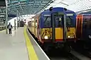 South Western Railway also operates many suburban "Metro" services in and around London. These all run between London Waterloo and Clapham Junction, where they split into two separate routes: via Putney and via Wimbledon.[36] All services on the suburban part of the network are operated by Class 450, Class 455, Class 456, Class 458 and Class 707 electric multiple units.