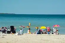 This area of the Lake Huron shore is known for its long sand beaches (the Main Beach is approximately 4 km long) as well as the sunsets since the beach area faces to the west.[25][26][27]