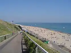 Southbourne's primary attraction is its sandy Blue Flag beach, which provides a quieter retreat from the more crowded beach along the coast at Bournemouth.[8] Between the clifftop coastal road and the promenade and beach is the Fisherman's Walk Cliff Railway, a funicular railway that provides very easy access to Southbourne beach, and from where it is possible to reach the beaches at Boscombe and Bournemouth.