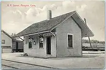 Passenger service ended in 1955 after floods from Hurricane Diane destroyed a bridge south at Putnam, Connecticut, and the segment from Putnam to Pomfret, Connecticut was abandoned. From North Windham, Connecticut to Pomfret was abandoned in 1959, and from Putnam to Blackstone in 1969. The remaining section from Willimantic to North Windham lasted until the mid 1980s. The Connecticut portion of the line was later converted to part of the Air Line State Park Trail, and the Massachusetts portion to part of the Southern New England Trunkline Trail.[1]