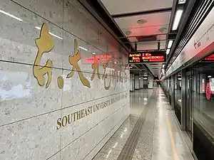 Southeast University Jiulonghu Campus station (Chinese: 东大九龙湖校区站), is a station on Line 3 of the Nanjing Metro. It started operations on 1 April 2015. The station is near Southeast University Jiulonghu Campus.[1]