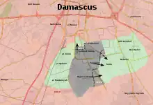 The Southern Damascus offensive (January–February 2018) began on 5 January 2018 as Jaysh al-Islam fighters attempted to infiltrate ISIL positions within the orchards situated in-between Yalda and Hajjar As-Aswad to the immediate south of Damascus city.[3] This resulted in numerous casualties and as such, a week later, on 12 January ISIL shock troops launched a counter-assault on Yalda's Zein neighborhood, triggering heavy clashes, resulting in the eventual capture of several buildings in the area.[4][5] On 22 January, ISIL made further progress in Taqdam Neighborhood of Hajjar al-Aswad, to this date ISIL ended up controlling 3/4 of Yarmouk Camp, majority of Hajjar al-Aswad, Qadam, Tadamon and large part of Yalda's eastern axis.[6] Fighting continued with ISIL forces continuing their advance against other militant groups later into January, with majority of a street between Yalda and Babbila as well as some gains within the district of Tadamon.[7] By 27 January, ISIL controlled almost the entirety of Hajjar al-Aswad after breaking through the last lines of defense and were on the verge of entering the town of Yalda, during the same time, further areas were also captured in the Yarmouk district.[8]