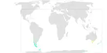 The range of this bird is quite large as it ranges from Antarctica to the subtropics of Chile, Africa, and Australia,[12][13] and has an occurrence range of 36,000,000 km2 (14,000,000 sq mi). It breeds on numerous islands throughout the southern oceans. The islands with larger populations include the Falkland Islands, South Georgia, South Orkney Islands, Staten Island, South Shetland, Heard Island, Macquarie Island, the Prince Edward Islands, and the Crozet Islands. The other locations with small populations are the Kerguelen Islands, Gough Island, Tristan da Cunha, Diego Ramirez, Isla Noir as well as four locations on the continent of Antarctica, including Terre Adélie, and small islands off the coast of Argentina near Chubut Province.[11] The colonies are visited year round.[12]