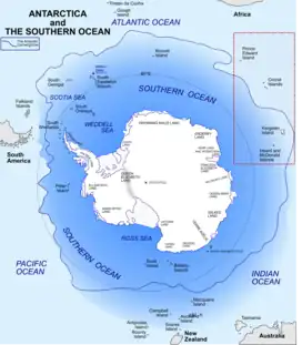 The ecoregion stretches from Prince Edward Islands in the west, past the Crozet Islands to the Kerguelen Islands 1500 km to the east, and includes the active volcano Heard Island and the nearby McDonald Islands.