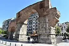 Macedonia is a diverse region which allows it to cater to a variety of different types of tourism.[67] The Chalkidiki peninsula is Macedonia's most popular beach destination, combining 550 kilometres (340 mi) of sandy beaches with dense forests.[67] There were 116 Blue Flag beaches in Macedonia in 2018, 85 of which were in Chalkidiki.[68] Additionally, the region was home to three Blue Flag marinas and one sustainable boating tourism operator.[68] Kavala is an important economic centre of Northern Greece, a center of commerce, tourism, fishing and oil-related activities. Pieria combines extensive plains, high mountains and sandy beaches and the region's beauty gives it a great potential for further tourist development. The island of Thasos, lying close to the coast of eastern Macedonia, is another tourist destination. Chalkidiki is home to Mount Athos, which is an important centre of religious tourism. The mountainous interior allows for hiking activities and adventure sports,[69] while ski resorts like Vasilitsa also operate in the winter months.[70] Macedonia is home to four of Greece's 18 UNESCO World Heritage sites. Vergina is best known as the site of ancient Aigai (Αἰγαί, Aigaí, Latinized: Aegae), the first capital of Macedon. Aigai has been awarded UNESCO World Heritage Site status. In 336 BC Philip II was assassinated in Aigai's theatre and his son, Alexander the Great, was proclaimed king. The most important recent finds were made in 1977 when the burial sites of several kings of Macedon were found, including the tomb of Philip II of Macedon. It is also the site of an extensive royal palace. The archaeological museum of Vergina was built to house all the artifacts found at the site and is one of the most important museums in Greece. Pella, which replaced Aigai as the capital of Macedon in the fourth century BC, is also located in Central Macedonia, as well as Dion in Pieria and Amphipolis. Philippi, located in eastern Macedonia, is another UNESCO World Heritage Site.[71] These are important poles for cultural tourism.[69] Thessaloniki is home to numerous notable Byzantine monuments, including the Paleochristian and Byzantine monuments of Thessaloniki, a UNESCO World Heritage Site, as well as several Roman, Ottoman and Sephardic Jewish structures. Apart from being the cultural centre of Macedonia, Thessaloniki is also a hub for urban tourism and gastronomy.[69] Macedonia is also home to various lake and wetland tourist destinations.[70]