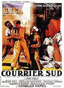 Southern Mail or Southern Carrier (French: Courrier sud) is a 1937 French action film directed by Pierre Billon and starring Pierre Richard-Willm, Jany Holt and Raymond Aimos.[1] It is adapted from the 1929 novel of the same name by Antoine de Saint-Exupéry.[2][3]