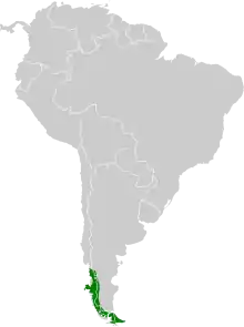 This is one of the most southerly bat species in the world, and is endemic to Chile and western and southern Argentina. In the north, it reaches as far as the southern part of the Maule Region in Chile, from which it is found southwards across Chile and neighbouring parts of Argentina as far as the Magellan Straits. South of the mainland, it is found across the whole of Tierra del Fuego, almost as far as Cape Horn.[3] It is found primarily in forests, especially those dominated by southern beech trees,[1] but has also been recorded from Matorral shrubland and Andean steppe country.[4]