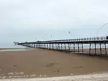 Within the boundaries of the historic county of Lancashire, the town was founded in 1792 when William Sutton, an innkeeper from Churchtown, built a bathing house at what is now the south end of Lord Street.[5] At that time, the area, known as South Hawes, was sparsely populated and dominated by sand dunes. At the turn of the 19th century, the area became popular with tourists due to the easy access from the nearby Leeds and Liverpool Canal. The rapid growth of Southport largely coincided with the Industrial Revolution and the Victorian era. Town attractions include Southport Pier, the second longest seaside pleasure pier in the British Isles,[6] and Lord Street, an elegant tree-lined shopping street.