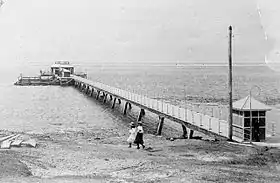 Within a few years, the Southport Pier near the Pacific Hotel had been extended to 900 feet (270 m) and a bathing enclosure was built against the pier for locals and visitors to enjoy protected sea bathing.[24] It was during this same period that construction of the Southport Sea Wall along the foreshore began.[25][26]
