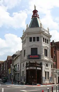 Southsea continued to grow eastwards in the early 20th century, extending to the area of Eastney. During this time significant local public buildings were constructed including the Queens Hotel, in the Edwardian Baroque style built in 1903 and the Kings Theatre built in 1907. The onset of the First World War saw an increase in fortifications on the seafront. Parades were held on Southsea Common. Southsea continued to thrive as a resort destination and a suburb of Portsmouth in the inter-war years, with many visitors in summer. At that time parts of the Common were converted into ornamental gardens and the Ladies' Mile was set out in 1925.[26] However the Second World War had an immense impact on the urban and social fabric of the area. Huge areas of Southsea were destroyed by bombing during The Blitz. Although some of Victorian Southsea escaped the bombing, areas such as the Kings Road and Elm Grove were extensively damaged and the Palmerston Road shopping areas were completely destroyed. The beachfront, piers and promenades were closed for the duration of the war.[27] Following the end of the war, in 1945 Southsea and the rest of Portsmouth embarked on a massive clearance and rebuilding scheme. Many areas of destroyed, damaged and intact low-income housing were cleared to make way for new building schemes. The Kings Road Estate and Roslyn House, among others, were developed between 1945 and the 1970s. Palmerston Road shopping area was developed in the 1950s and still stands today.[28] Although visitor numbers to the resort area never recovered, Southsea continued to develop throughout the 20th century and today remains a mixed residential area and leisure destination.[29]