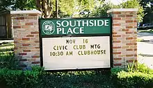 ![]() A sign with Southside Place's logo | |