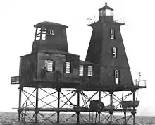 Southwest Reef Light is a historic lighthouse built in 1856 at the end of Southwest Reef in Atchafalaya Bay, Louisiana to replace lightships which had been stationed there for ten years.[2][3][4][5] It served to guide vessels around the reef and into the main channel of the Atchafalaya River. It was discontinued in 1916 after a new, shorter and deeper, channel had been dredged across the reef, making it obsolete. Point Au Fer Reef Light took over its function.