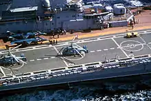 Minsk operated with the Pacific Fleet. Shortly after the Sino-Vietnamese War of 1979, Minsk was deployed to the South China Sea, making a port of call at Cam Ranh Bay, Vietnam, in September 1980. She visited Vietnam again in 1982 during her second deployment before sailing onto the Indian Ocean.[3] In 1984, Minsk, the Ivan Rogov-class landing ship Aleksandr Nikolayev, and Vietnam forces conducted the Soviet Navy's first amphibious landing in Vietnam.[4]