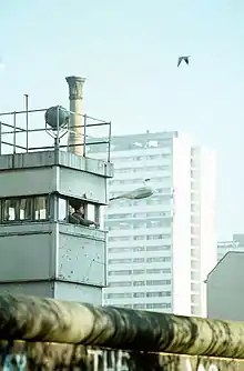 ![]() Conrad Schumann leaping over barbed wire into West Berlin on August 15, 1961, three days after construction began on the Berlin Wall[1] | |