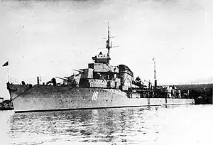 Built in Nikolayev's Shipyard No. 198 (Andre Marti (South)) as yard number 321, Boyky was laid down on 17 April 1936. The ship was completed on 9 March 1939[9] and was commissioned into the Black Sea Fleet on 17 May.[10] When the Germans invaded the Soviet Union on 22 June 1941, the ship was assigned to the 2nd Destroyer Division. On 23–24 June Boyky laid defensive mines off Sevastopol.[11] On 9 July, the 2nd Destroyer Division, including the destroyer leader Kharkov, Boyky and her sister ships Bodry, Bezuprechny and Besposhchadny made an unsuccessful attempt to interdict Axis shipping near Fidonisi. On 14–17 August, Boyky escorted the incomplete ships being evacuated from the shipyards at Nikolayev. Together with the light cruisers Chervona Ukraina and Komintern and the destroyers Nezamozhnik and Shaumyan, Boyky and Besposhchadny bombarded Axis positions west of Odessa on 1–2 September.[12] That month, Boyky began ferrying troops and supplies to encircled Odessa as well as providing naval gunfire support.[11] On 7 September, Boyky and the destroyer Sposobny escorted the Commander of the Black Sea Fleet, Vice Admiral Filipp Oktyabrsky, aboard the destroyer leader Kharkov to Odessa. While they were present, all three ships bombarded Romanian troops. On 16–21 September the destroyer helped to escort transports ferrying the 157th Rifle Division to Odessa. She landed a company of naval infantry behind Romanian lines at Grigorievka on 21 September and provided fire support for them the following day.[13]