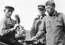 The Finns did not pay much attention to the living conditions of the Soviet POWs at the beginning of the war, as the war was expected to be of short duration. The quantity and quality of camp personnel was very low, as the more qualified men were at the front. It was not until the middle of 1942 that the quantity and quality of camp personnel was improved.[9] There was a shortage of labour in Finland and authorities assigned POWs to forest and agricultural work, as well as the construction of fortification lines.[10] Some Soviet officers cooperated with the Finnish authorities and were released from prison by the end of the war.[11]