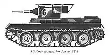 However, during the Battle of Khalkhin Gol, BT tanks proved vulnerable to Japanese close quarter teams[11] (tank killer squads[12]) which were armed with "Molotov cocktails"[13] (fire bottles). The Soviet BT-5 and BT-7 light tanks, which had been operating in 100-degree-plus heat on the Mongolian plains, easily caught fire when a Molotov cocktail ignited their gasoline engines.[14] General Zhukov made it one of his points when briefing Stalin, that his "...BT tanks were a bit fireprone..."[15][16]