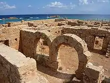 The Palace of the Dux was excavated by Goodchild between 1959 and 1962.[8] It was last used as the Byzantine Duke's Palace and contains over 100 rooms. A marble inscription testifies to its use as a Roman military commander's house, however the identification of the name and status of the man who built the palace is problematic.[9]
