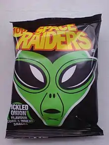 Space Raiders are a British brand of corn and wheat snacks made by KP Snacks.[1] Introduced in 1987, the alien shaped snacks are currently available in Beef, Pickled Onion, Saucy BBQ and Spicy flavours.[2]