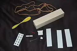 The completed gliders were wound up with as many as 100 or more turns on the propeller and suspended on a string from a separate bracket with the propeller held in place. Two, three or four string lanes were typically used. The gliders were held in place and launched when the mechanism released the propeller.