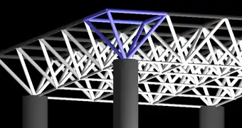 Simplified space frame roof with the half-octahedron highlighted in blue