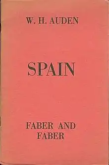 Spain is a poem by W. H. Auden written after his visit to the Spanish Civil War.[1] Spain was described by George Orwell as "one of the few decent things that have been written about the Spanish war". It was written and published in 1937. Auden donated all the profits from the sale of Spain to the Spanish Medical Aid Committee.[2]
