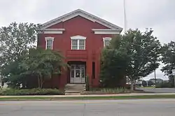 The first county courthouse, now also known as Old Spalding County Courthouse, was built in 1859. It was also used as the Spalding County Jail, and was listed on the National Register of Historic Places in 2000.[1] The building's address is 232 East Broad Street.[1] It is a two-story painted-brick building. It was built by David Demarest (1811-1879), who also built the NRHP-listed Greene County Courthouse in Greensboro, Georgia.[2]