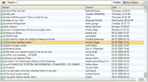 An email inbox containing a large amount of spam messages