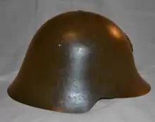 The M1934 helmet (also known as M38 for its years of distribution or “Eibar” for its supposed production in the city) is a steel combat helmet used by various factions in the Spanish Civil War. Meant not for use by the Army, but instead by security forces such as police, the helmet was of similar shape to the Model 1926 helmet in use by the army. The helmet would mainly see use by the Nationalists in the conflict.[1]