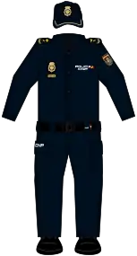 The National Police Corps (Spanish: Cuerpo Nacional de Policía, CNP; [ˈkweɾpo naθjoˈnal de poliˈθi.a]; also known simply as National Police, Policía Nacional)[1] is the national civilian police force of Spain. The CNP is mainly responsible for policing urban areas, whilst rural policing is generally the responsibility of the Civil Guard, the Spanish national gendarmerie force. The CNP operates under the authority of Spain's Ministry of the Interior. They mostly handle criminal investigation, judicial, terrorism and immigration matters. The powers of the National Police Corps varies according to the autonomous communities. For example, Ertzaintza in the Basque Country and Mossos d'Esquadra in Catalonia are the primary police agencies. In Navarra they share some duties jointly with Policía Foral (Foruzaingoa).