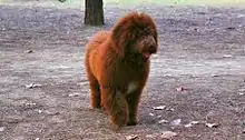 It has a distinctive curly coat which is woolly in texture and may form cords when long. The coat should not be clipped or groomed for aesthetic purposes. Instead, it should look entirely natural, as though it is not groomed at all. It should never be trimmed, but sheared down at least once a year. SWD puppies are always born with curly hair.