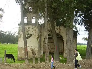 The pre-Columbian history of the Altiplano Cundiboyacense started around 12,500 years BP with the oldest human evidence found at El Abra, near Zipaquirá.[9] Other archaeological sites of the preceramic are Tequendama, Tibitó, Checua and Aguazuque. At the time of the arrival of the first hunter-gatherers, the area was still populated by Pleistocene megafauna, such as Cuvieronius, Haplomastodon and Equus amerhippus.[10]