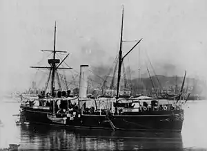 Isla de Luzón was built by Elswick in the United Kingdom. She was laid down on 25 February 1886, launched on 13 November 1886, and completed on 22 September 1887.[1] She had a steel hull and one funnel.[2] She had a large beam for her length, and tended to have poor seakeeping qualities, burying her bow into waves.[1] Small for a protected cruiser, she was often called a gunboat by 1898.