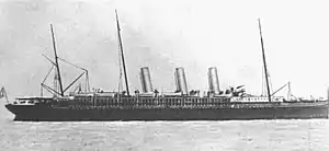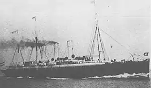 In late 1898 or in 1899, Hamburg America bought Rapido from the Spanish Navy and returned her to commercial passenger service under her original name, Columbia.[1] Again operating on the Hamburg-Southampton-New York City route, Columbia began her first post-war commercial voyage by departing Hamburg on 31 August 1899.[1]