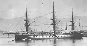 The Spanish ironclad Arapiles was a wooden-hulled armored frigate bought from England during the 1860s for the Spanish Navy. Begun as an unarmored steam frigate, she was converted into an ironclad while under construction. Damaged when she ran aground in early 1873, she was under repair in the United States during the Virginius Affair later that year as tensions rose between the US and Spain over the incident. The ship was hulked in 1879 and the poor condition of her hull forced her reconstruction to be cancelled in 1882. Arapiles was scrapped a year or two later.
