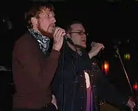 Grand Buffet is a hip-hop funk duo from Pittsburgh, Pennsylvania, made up of Jackson O'Connell-Barlow (stage names: Iguanadon, Grape-a-Don, Plaps, Nate Kukla, and Mr. Pennsylvania) and Jarrod Weeks (stage names: M-Dog, Lord Grunge, Viceroy, Matt Kukla, Fred Durts). Their music is a unique brand of humorous, often satirical rap. They have toured several times with notable artists such as Gil Mantera's Party Dream, Sage Francis, Of Montreal, Cex,[1] Sole, Magnolia Electric Co.,[2] Streetlight Manifesto,[3] and the late Wesley Willis.[2] They have also toured the United States and Europe extensively.[1] In 2005 they finished a European tour with Sage Francis,[4] and an American Tour with Of Montreal and MGMT in 2006.[1] They toured with Girl Talk in 2008, and Third Eye Blind in 2009.