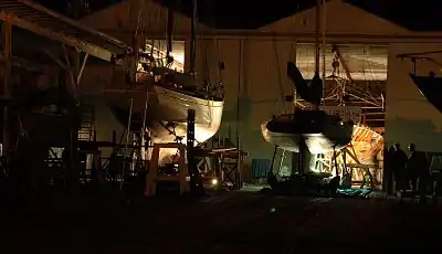 The Arques School of Traditional Boatbuilding[1] opened in June 1996 within the Arques Trust property in the Marinship District of Sausalito. It was founded by Bob Darr, who is currently the Program Director and Head Instructor. With a core apprenticeship program of just six students, it is a small school dedicated to developing craftsmen skilled in the art of building boats in the traditional plank on frame methods. The school owes its existence to an endowment provided by Donlon Arques who laid the groundwork for the school prior to his death in 1993.