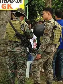 - May 23, 2017 to October 23, 2017 - a Composite SAF Contingent was sent to augment government forces to clear Marawi City of an estimated 1,000 members of ISIS-inspired and combined Maute and Abu Sayyaf Local Terrorist Groups (LTGs). For five months, the contingent directly confronted the enemy at the Main Battle Area where they fought side by side with the elite forces of the AFP in neutralizing said LTGs. They provided Assault Teams, Sniper Teams, Weapons Teams, LAC Teams and Seaborne Teams. The contingent was led by PSUPT Rex Arvin Malimban. It was composed of personnel mostly from the CTU Companies of the line battalions such as 83SAC (CRG) and 84SAC (Seaborne) of the RDB led by PSUPT Lambert Suerte, 103SAC and 15SAC of 1SAB led by PSUPT Jack Angog, 25SAC of 2SAB led by PSUPT Mario Mayames, Jr, composite company mostly from 55SAC of 5SAB led by PSUPT Ledon Monte. 4SAB and SAFTB (Commando Cl-77 as test mission) also sent personnel. Four were KIA: PO3 Alexis Mangaldan (5SAB), PO1 Moises Kimayong (SAFTB), PO2 Alexis Laurente (1SAB) and PO2 Daniel Tegwa (SAFTB).[30] For their gallantry in action, the four were awarded the Order of Lapu-Lapu's Kalasag Medal.[12]