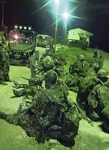 They have seen extensive action in Somalia during Operation Linda Nchi and the subsequent rehatting to AMISOM with their most notable achievement being an amphibious landing at the port city of Kismayo.[10] During the operation assigned the name 'Operation Sledge Hammer' ASOB operators were the first to land on the beaches outside the city and captured strategic targets before linking up with regular infantry units and their Somali allies in the Battle of Kismayo. The pre-dawn operation was launched on 28 September 2012 with an amphibious landing from seven Kenyan naval ships at a beach north of the city. The operation lasted a day and a half with little resistance at first before Al Shabab hastily organized light defences.[11] However by late afternoon the next day Al Shabab forces had largely withdrawn with the old airport and port already captured. They have also allegedly been deployed to Eastern DRC to assist the Congolese military in fighting the ADF.[12]